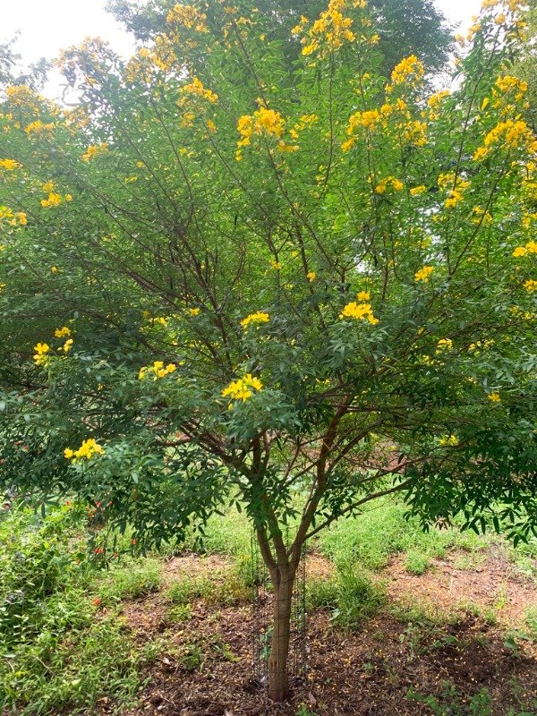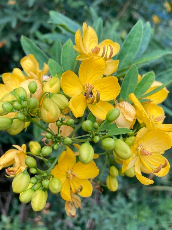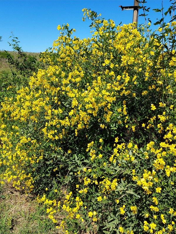 Floración: Flores grandes amarillas, abundantes y muy vistosas, entre febrero y mayo. Atrae abejas y abejorros.
