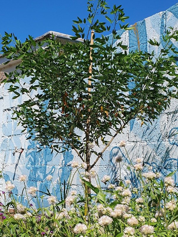 Tamaño: Hasta 3 metros de alto por 2 metros de ancho. Apto veredas angostas (+1.40mt), jardines, plazas, y cercos verdes por la densidad del follaje. Requiere tutor los primeros años. Sensible a la poda excesiva.