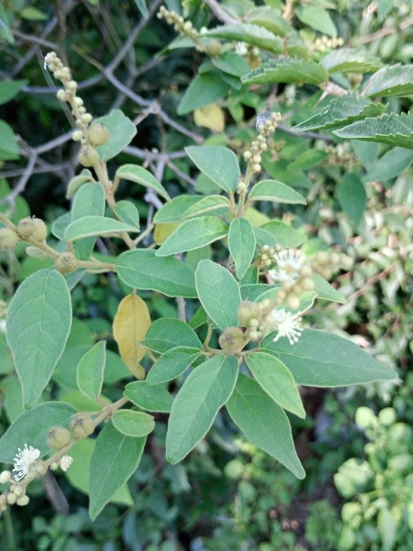 Floración: Flores blancas pequeñas agrupadas en varas, desde octubre a mayo.