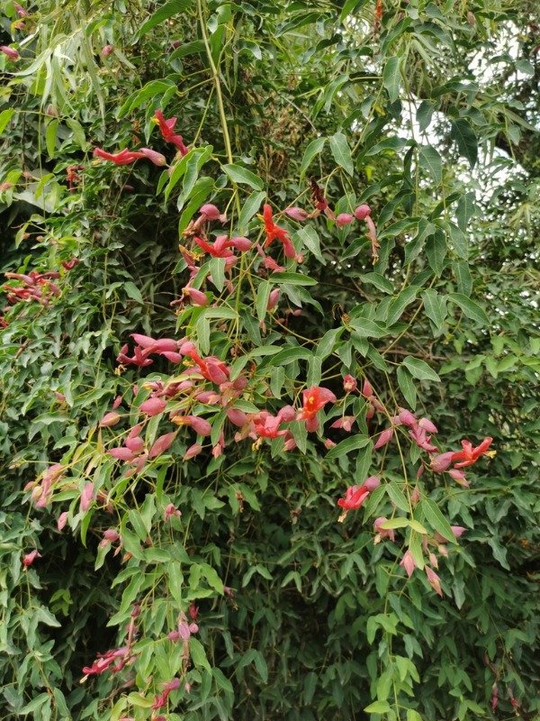 Floración: Sus flores son alargadas con forma de trompeta, en tonos que van desde el amarillo/naranja al rojo intenso. Muy requeridas por los colibríes. Florece desde primavera a otoño.